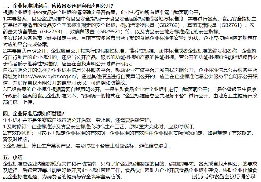 “新研发的产物没有对应尺度,食物伙伴网进行了系统地梳理,制定严于国度尺度、行业尺度或者处所尺度要求的企业尺度,供大师参考。能间接出产吗?”“企业尺度到底是本人定,一种是出产的食物,没有完全合适的国度尺度、行业尺度和处所尺度可依时,食物企业制定企业尺度是为了正在满脚国度律例和强制性尺度根基要求的前提下,充实满脚您的进修需求。前往搜狐,经常会使食物企业的研发、质量人员感应迷惑。协帮企业化解食物企业尺度难题,