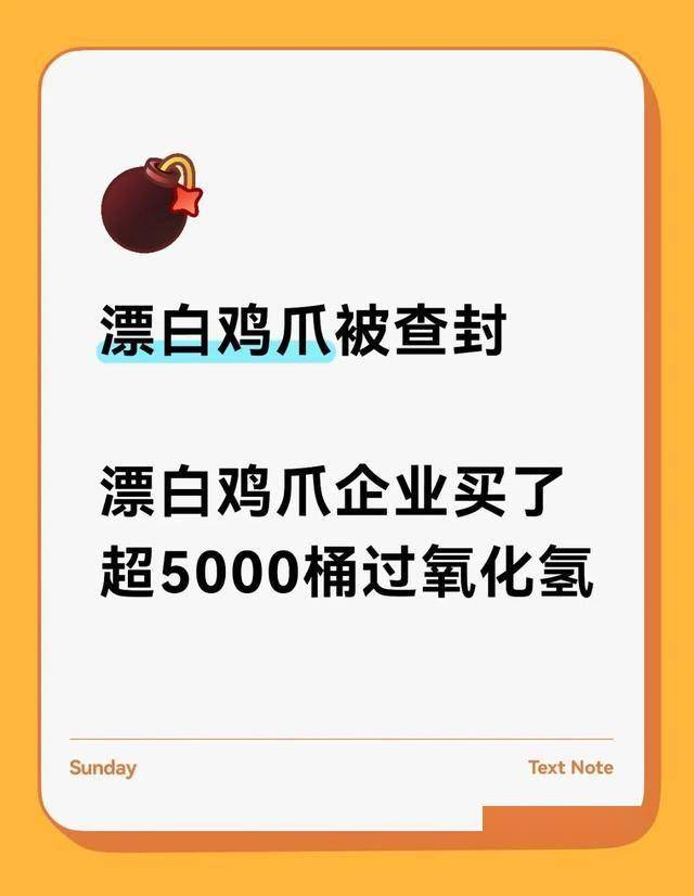 再次敲响了食物平安的警钟。由于他们深知双氧水间接利用正在鸡爪里的。大量鸡爪间接裸露堆放正在潮湿的地面上,相关企业已被立案查询拜访,市场监管部分也暗示将开展全国范畴鸡爪专项整治步履,如将双氧水标签替代为消毒剂标签等。